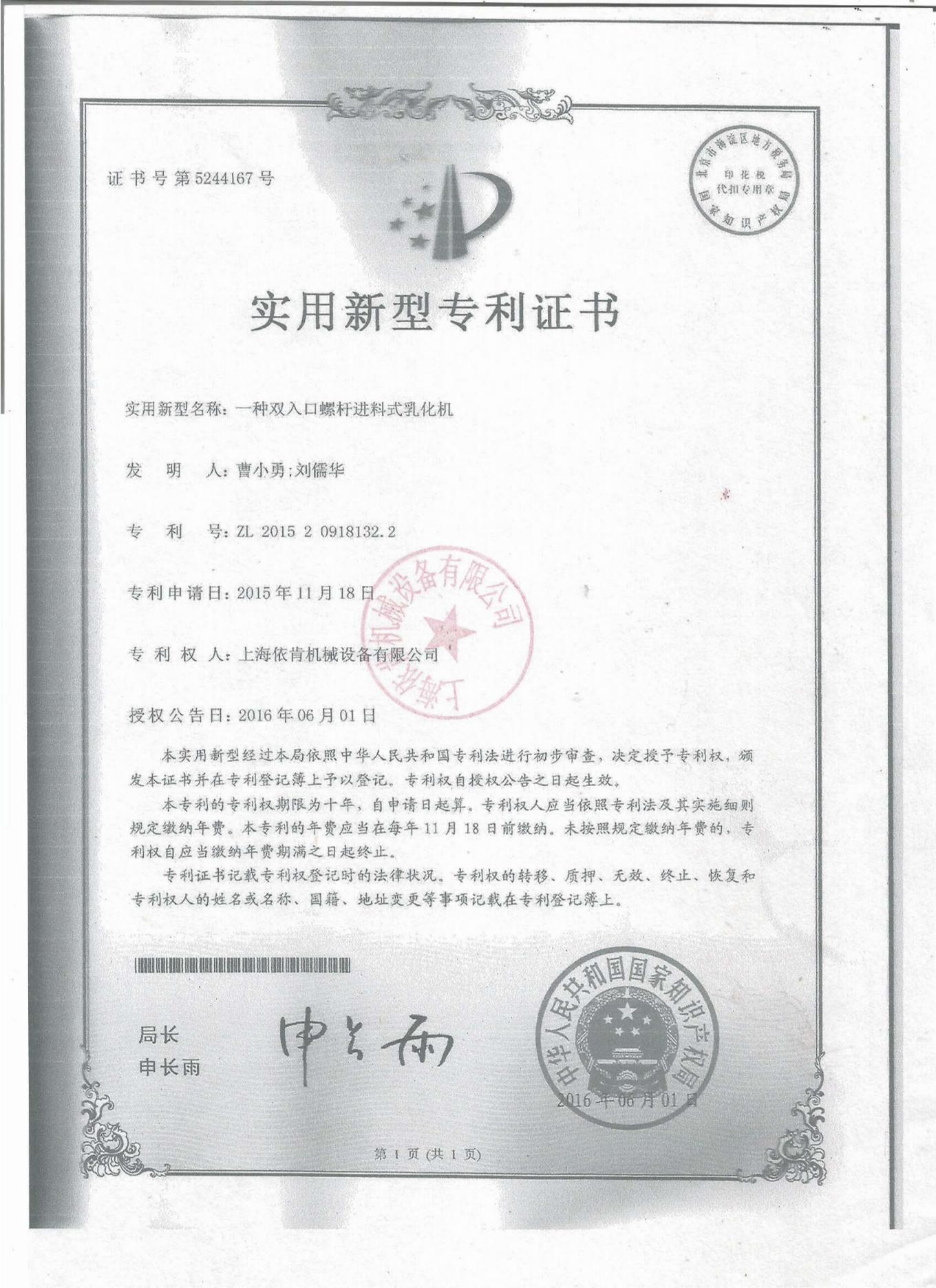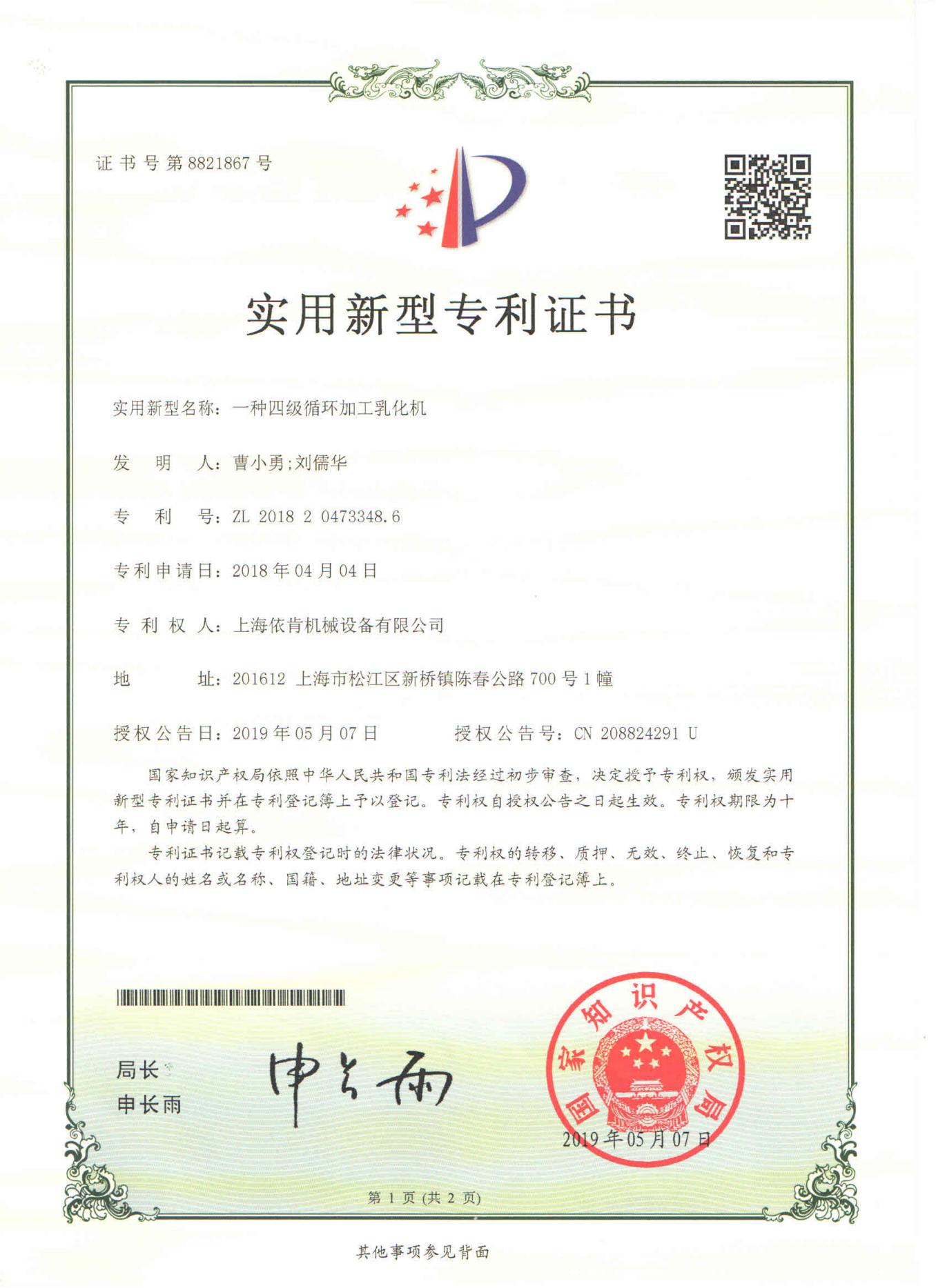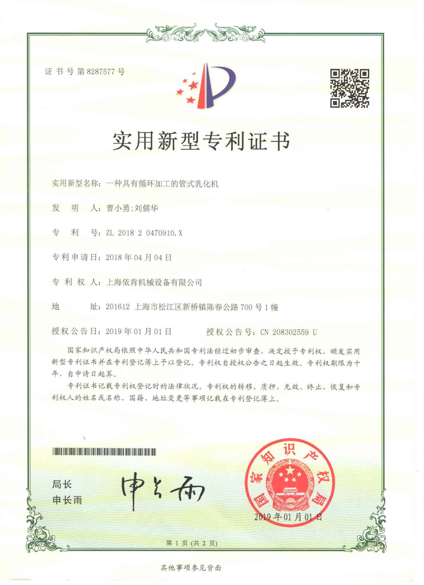 多项专利及证书