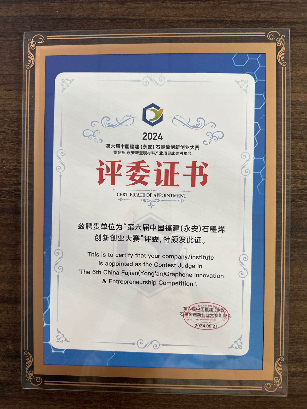《助力创新,引领未来》——上海博天堂网址机械设备有限公司担任第六届中国福建永安石墨烯创新创业大赛评委